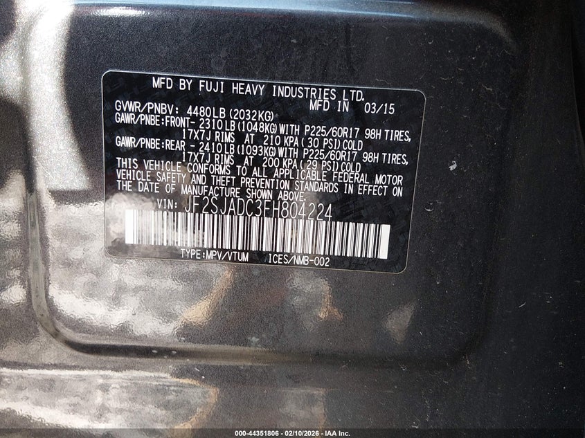 Рассчитать стоимость 2015 Subaru Forester 2.5I Premium с доставкой и растаможкой