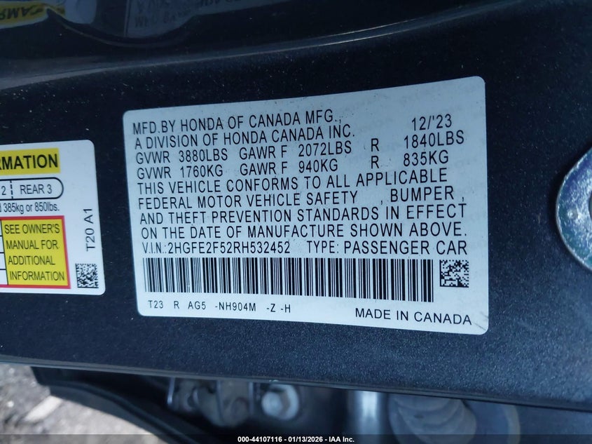 Рассчитать стоимость 2024 Honda Civic Sport с доставкой и растаможкой